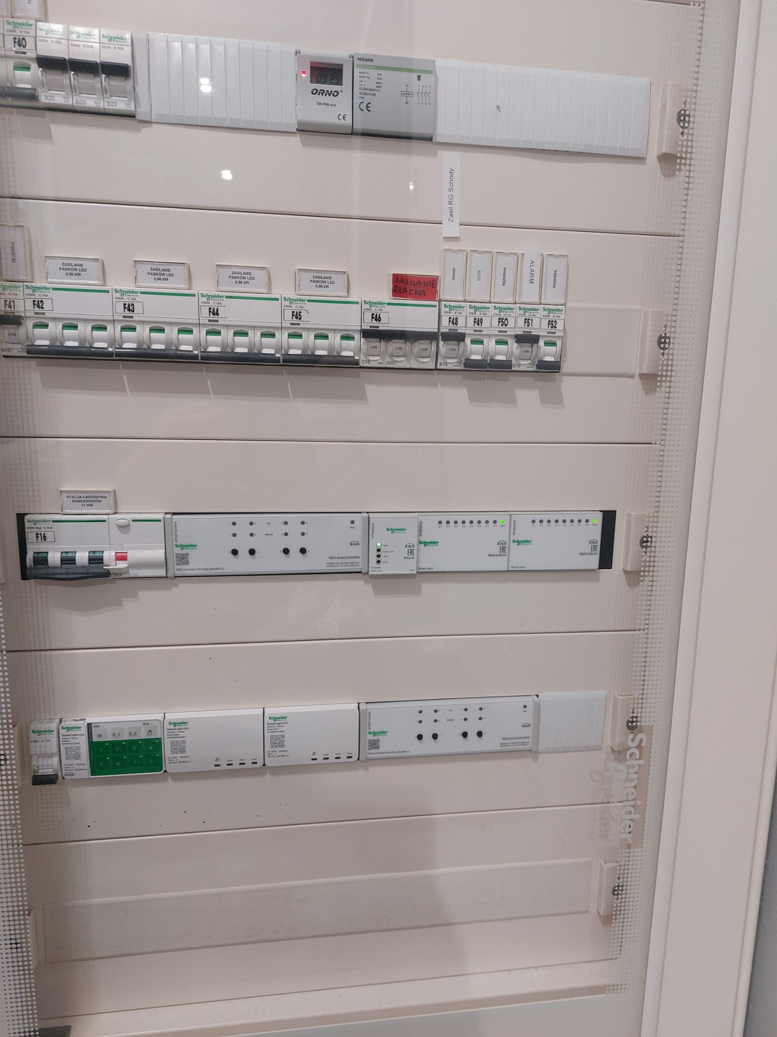 • projektowanie, programowanie i uruchomienie sterowania oświetleniem w oparciu o panele operatorskie firmy Schneider Electric dla całego obiektu;